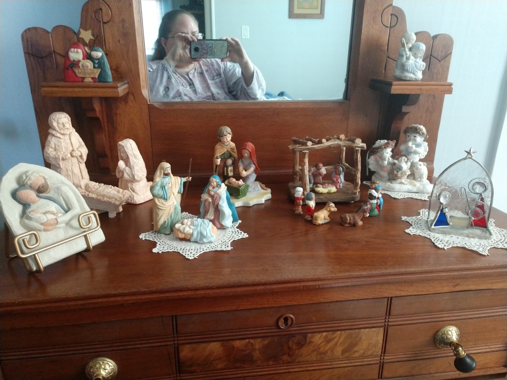 Last week I asked you all to share your favorite decorations and this is what I received. I didnโt ask specifically for nativities, but that is what they sent. Beautiful nativity sets.