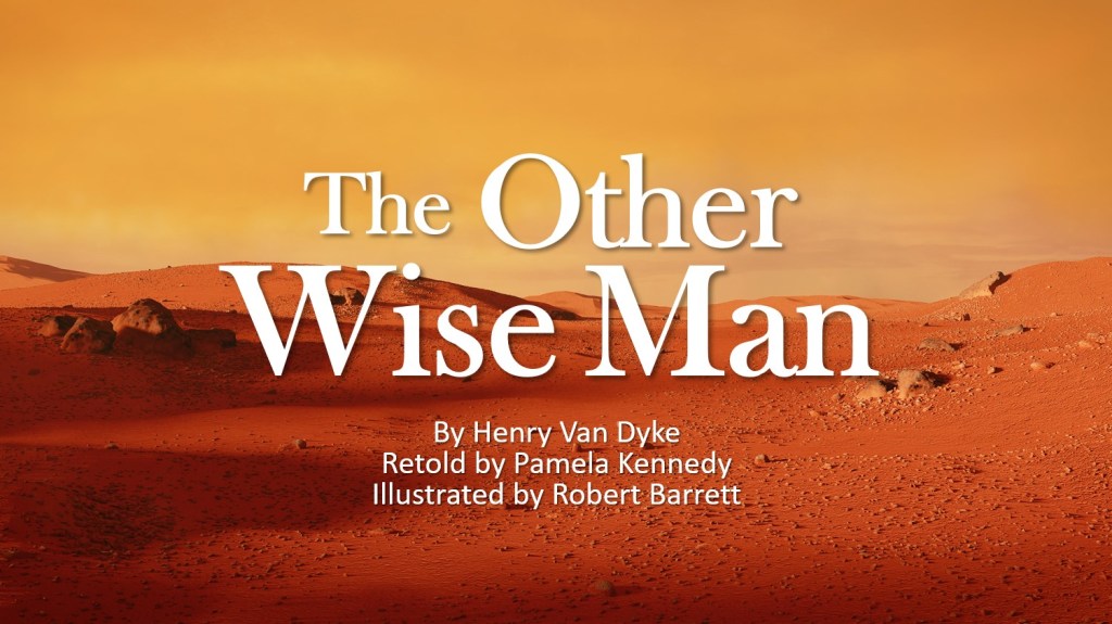 And so it was that the other wise man sold his precious sapphire, bought camel and supplies, and set out across the desolate desert. By day the sun burned with terrible heat and at night the chill winds pulled at his flowing robes.