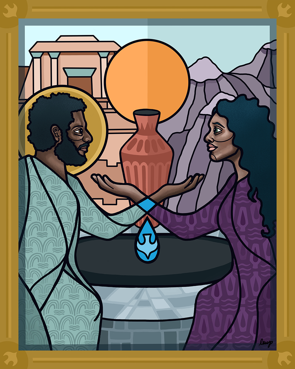 This is the living water Jesus is talking about. This is grace and acceptance. I love how the art for this week reflects the mutual dependence of Jesus and the woman at the well. They are portrayed as equals.