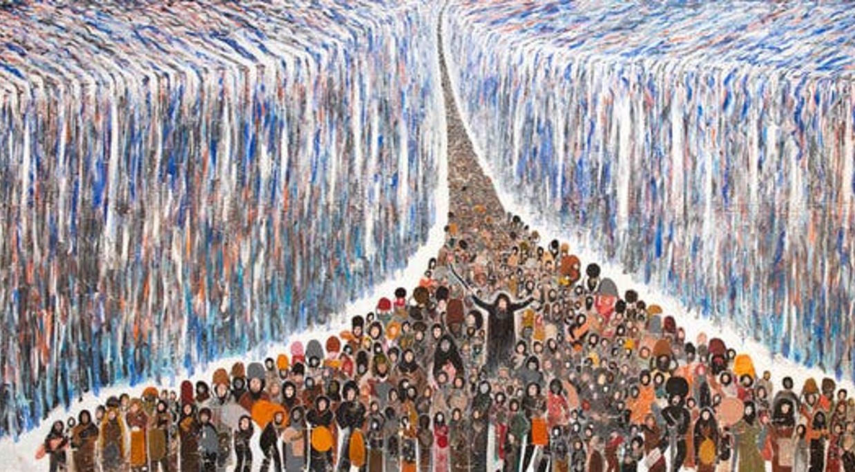 Standing on the shore of the Red Sea with Pharaoh’s army fast approaching with horses and chariots, Moses raises his staff and God sends a mighty wind that parts the waters and the people of Israel walk through on dry land. Then just as the army is about to catch up with them, Moses lowers the staff, and the waters come back together, blocking the path and drowning the soldiers and horses that had started to cross.